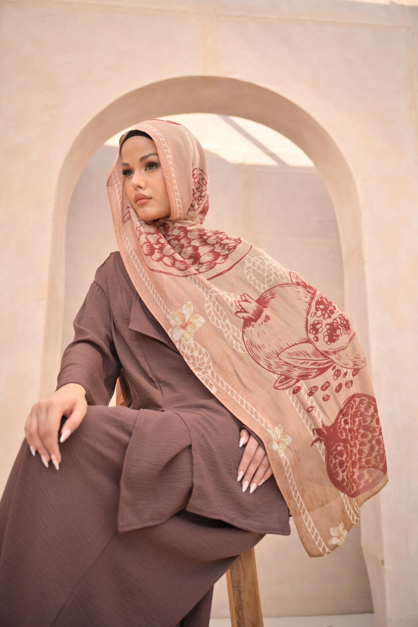 Please note that all our fabrics are hand-dyed in limited quantities, making each piece unique. As a result, some variation in color between batches is normal, adding a personalized and artisanal quality to every hijab. The subtle variations reflect the beauty of individuality, just as every woman carries her own radiant light within.